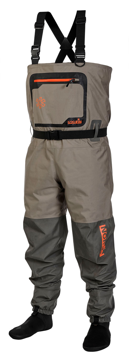 Τα ανθεκτικά, αδιάβροχα και άνετα Waders NORFIN FLOW είναι κατασκευασμένα από υψηλής ποιότητας διαπνέον υλικό τεσσάρων στρωμάτων που προσφέρει την ιδανική ισορροπία μεταξύ ανθεκτικότητας και διαπνοής. Τα συγκεκριμένα waders διαθέτουν ενσωματωμένες αδιάβροχες υψηλής ποιότητας κάλτσες NEOPRENE, λειτουργική ζώνη για τη ρύθμιση της μέσης, ελαστικές τιράντες με αποσπώμενες αγράφες, μια μεγάλη τσέπη στο στήθος με αδιάβροχο φερμουάρ για αξεσουάρ αλιείας και μία εσωτερική τσέπη για το κινητό σας για μέγιστη ασφάλεια.