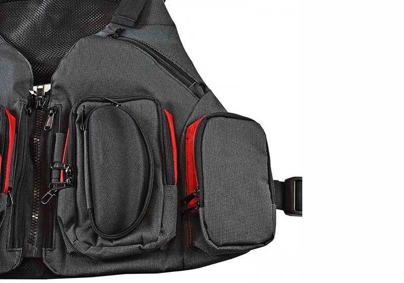Γιλέκο ψαρέματος τύπου Vest μεταφοράς τεχνητών και εξοπλισμού με πάρα πολλές θήκες μπροστά εκ των οποίων οι 2 μπροστά για μεγάλες κασετίνες και άλλες 4 για μικρότερες κασετίνες τεχνητών και 2 πίσω για μεγαλύτερη χωρητικότητα και εργονομία.