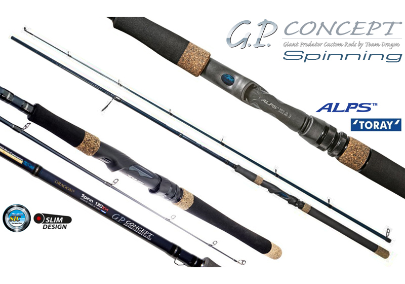 Με την ποιότητα που χαρακτηρίζει την εταιρεία DRAGON αφού για την κατασκευή όλων των καλαμιών της χρησιμοποιεί blank της εταιρείας TORAY πολλαπλών στρώσεων Carbon, τα G.P. Concept χαρακτηρίζονται από την εξαιρετικά γρήγορη δράση κορυφής, μοντέρνο σχεδιασμό ενώ είναι εργονομικά και πρόκειται να καλύψουν σε μεγάλο βαθμό τις ανάγκες όλων των spinners. Οι οδηγοί τους είναι της εταιρείας SeaGuide τύπου XO SiC κατασκευασμένοι από ανοξείδωτο ατσάλι για μεγαλύτερη αντοχή στο θαλασσινό νερό αλλά και μικρότερο συνολικό βάρος. Η βάση μηχανισμού είναι της εταιρείας ALPS και όλα αυτά τα υψηλά στάνταρ της εταιρείας DRAGON συνδυάζονται με την πολύ προσιτή τιμή αγοράς. Σίγουρα μια σειρά καλαμιών που κατατάσσεται στις κορυφαίες «Best Value For Money» σειρές καλαμιών της εταιρείας.
