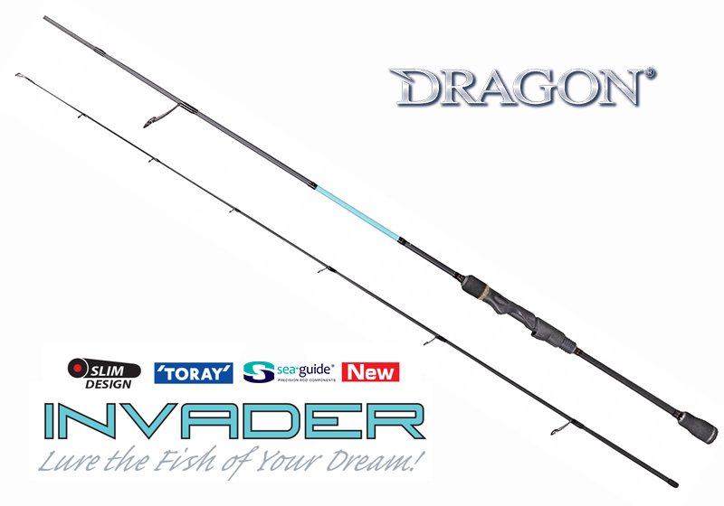 Με την ποιότητα που χαρακτηρίζει την εταιρεία DRAGON αφού για την κατασκευή όλων των καλαμιών της χρησιμοποιεί blank της εταιρείας TORAY πολλαπλών στρώσεων Carbon, τα INVADER SPINN χαρακτηρίζονται από την εξαιρετικά γρήγορη δράση κορυφής, μοντέρνο σχεδιασμό ενώ είναι εργονομικά και πρόκειται να καλύψουν σε μεγάλο βαθμό τις ανάγκες όλων των spinners. Και όλα αυτά τα υψηλά στάνταρ της εταιρείας DRAGON συνδυάζονται με την πολύ χαμηλή τιμή αγοράς. Σίγουρα μια σειρά καλαμιών που κατατάσσεται στις κορυφαίες «Best Value For Money» σειρές καλαμιών της εταιρείας.