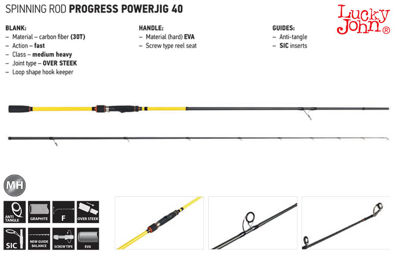 Η PROGRESS αποτελεί μια από τις πιο ολοκληρωμένες σειρές καλαμιών της εταιρείας Lucky John που μπορεί να καλύψει τις περισσότερες κατηγορίες του spinning. Μία από τις κατηγορίες καλαμιών της σειράς PROGRESS αποτελούν τα μοντέλα με ονομασία POWERJIG που έχουν δημιουργηθεί εδώ και πολύ καιρό από την εταιρεία Lucky John.