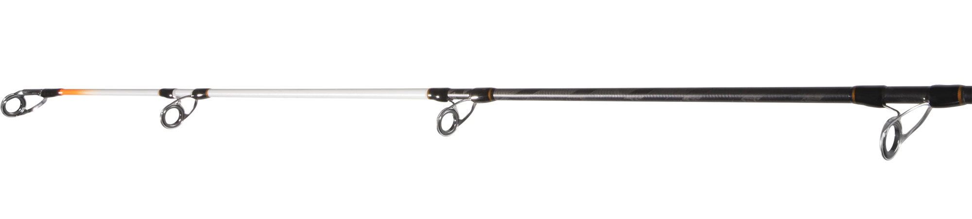 Για οδηγοί πετονιάς/νήματος επιλέχθηκαν της εταιρείας SeaGuide και συγκεκριμένα τα νέα μοντέλα XO με λιγότερο βάρος, υψηλή ποιότητα κεραμικού αλλά και ενισχυμένο σκελετό. Το μέγεθος και η απόσταση των οδηγών σε συνδυασμό με την κλίση τους μπορούν να δεχτούν μεγάλους μηχανισμούς από 60αρι μέγεθος και πάνω ώστε να έχουμε μακρύτερες βολές και ''ελευθερία'' κατά την ανάκτηση. Η γραφιτούχα λαβή τοποθετήθηκε στους 71,5 πόντους για σωστό μοχλό κατά την ρίψη. Επίσης στο τελείωμα της λαβής τοποθετήθηκε Eva υλικό σε εργονομικό σχήμα. Δεν θα μπορούσε να παραλείψει το βάψιμο της μύτης σε ευδιάκριτο λευκό χρώμα και φωσφορούχο πορτοκαλί στο τελείωμά της.