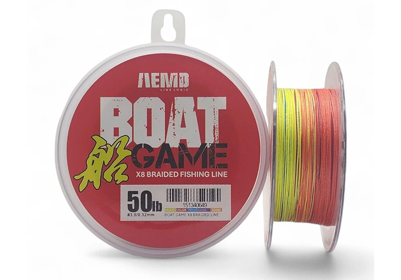 Boat Game νέο 8κλωνο PE νήμα της AEMD-REVVATE! Κατασκευασμένο από υψηλής ποιότητας πολυαιθυλένιο με Ιαπωνική τεχνολογία στην πλέξη ώστε να μην χαράζει οδηγούς αλλά και να αντέχει στο χρόνο και στις τριβές χάρις στην ειδική επικάλυψη που διαθέτει!! Η σφιχτή του πλέξη το καθιστά ιδιαίτερα λεπτό και μεταξένιο!! Άλλο ένα χαρακτηριστικό είναι ότι αλλάζει χρώμα κάθε 10 μέτρα ώστε να ξέρουμε ανα πάσα στιγμή σε πόσο βάθος ψαρεύουμε.