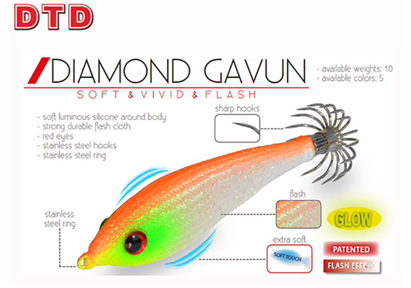 Τα μάτια της Diamond Gavun είναι έντονα κόκκινα, τα ανοξείδωτα αγκύλια έχουν μεγάλο άνοιγμα χαρακτηριστικό που την κάνει ιδανική για το ψάρεμα σουπιάς.