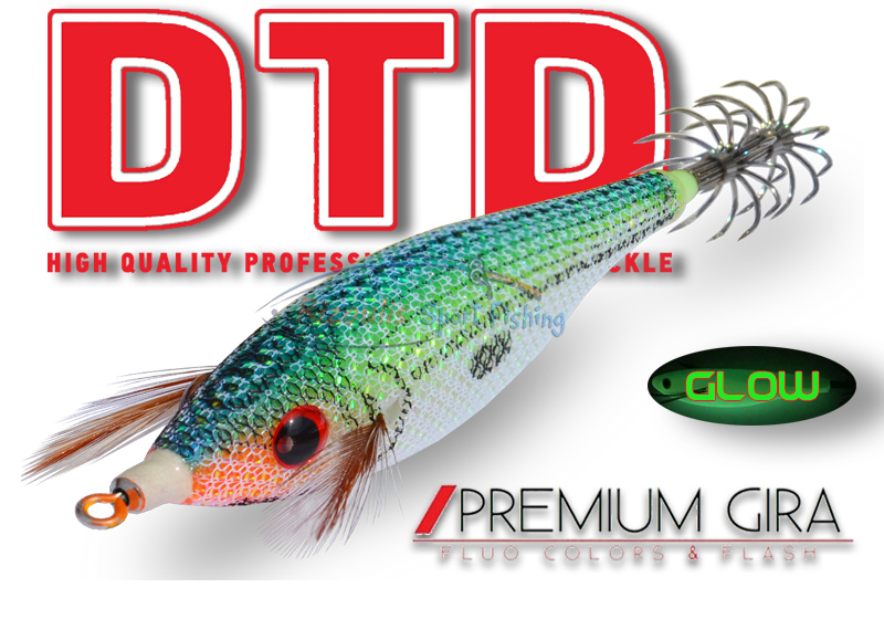 Η καλαμαριέρα Premium Gira, της DTD έχει βγει ξανά στην αγορά πιο ανανεωμένη και με πολλές καινοτομίες και περιλαμβάνει 10 διαφορετικούς συνδυασμούς σε έντονα χρώματα με πολύ δυνατό φώσφορο.. Είναι ντυμένη εξωτερικά με ύφασμα με στρας, το οποίο μοιάζει με λέπια και αντανακλά όλο το διαθέσιμο φως, όποια ώρα της ημέρας και εάν ψαρεύετε. Εάν σας αρέσει να ψαρεύετε με το φως του ήλιου μπορείτε να επιλέξετε το μπλέ χρώμα και το πορτοκαλί ή πράσινο εάν σας αρέσει το νυχτερινό ψάρεμα.