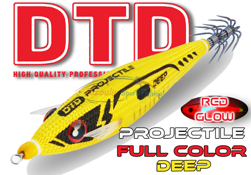 Η DTD Projectile Full Color είναι μια καλαμαριέρα που ξεχωρίζει για τις προηγμένες τεχνολογίες που διαθέτει. Είναι οι πιο αποτελεσματικές καλαμαριέρες ως προς την επίτευξη μακρινής βολής (45% πιο μακρινές βολές) με αποτέλεσμα να καλύπτουν μεγαλύτερη επιφάνεια (110% μεγαλύτερη κάλυψη) σε σχέση με τις κλασικές καλαμαριέρες με εξωτερικό βαρίδι. Στη Projectile η εταιρεία έχει χρησιμοποιήσει τεχνολογία από τα Ballistic μοντέλα, αλλά με βελτιώσεις ώστε να έχουν καλύτερες βολές και πιο γρήγορη ταχύτητα βύθισης. Είναι εξοπλισμένη με αεροδυναμικά πτερύγια από σιλικόνη ώστε να βελτιώνει την ταχύτητα βύθισης και να μοιάζει σαν πραγματικό ψάρι. Το σώμα της καλαμαριέρας είναι καλυμμένο με ανθεκτικό ύφασμα για βελτιωμένη ορατότητα σε σκοτεινές συνθήκες. Διαθέτει εξαιρετική ισορροπία και εργονομική σχεδίαση για αποτελεσματική κίνηση στο νερό.