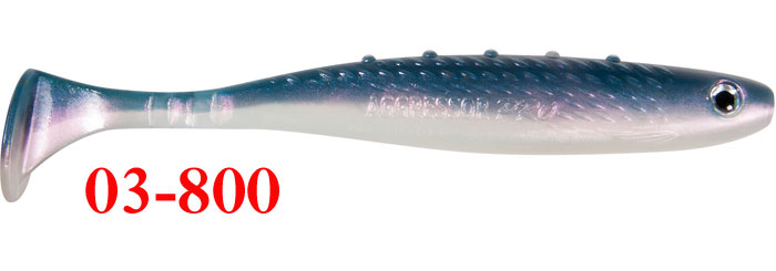 ελαφρά ακόμη και όταν δεν ανακτούμε ή και χωρίς καθόλου Jerks. Οι Aggresor πρακτικά προκαλούν τα ψάρια να την δαγκώσουν σε όλες τις συνθήκες. Διατίθενται σε διάφορα φυσικά χρώματα με ζωντανά 3D μάτια παρομοιάζοντας τέλεια τα μικρόψαρα. Μπορεί να αρματωθεί με Jig Heads ή OffSet Αγκίστρι
