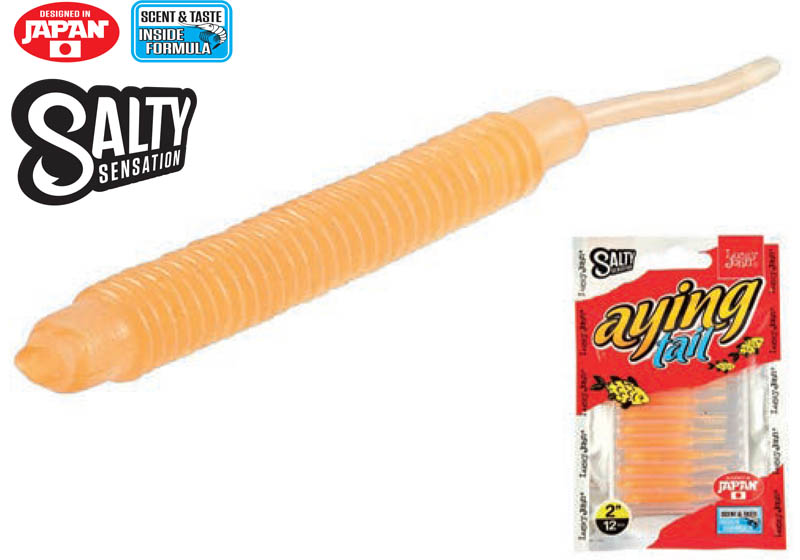 Ακόμη ένα μικροσκοπικό σιλικονάκι από την Lucky John είναι το λεγόμενο AYING TAIL. Πρόκειται για μια πολύ λεπτή σιλικόνη που ο κορμός της δεν είναι λείος αντίθετα έχει κάποιες ραβδώσεις που δημιουργούν μικροδονήσεις κατά την διάρκεια της κίνησης της στο νερό.