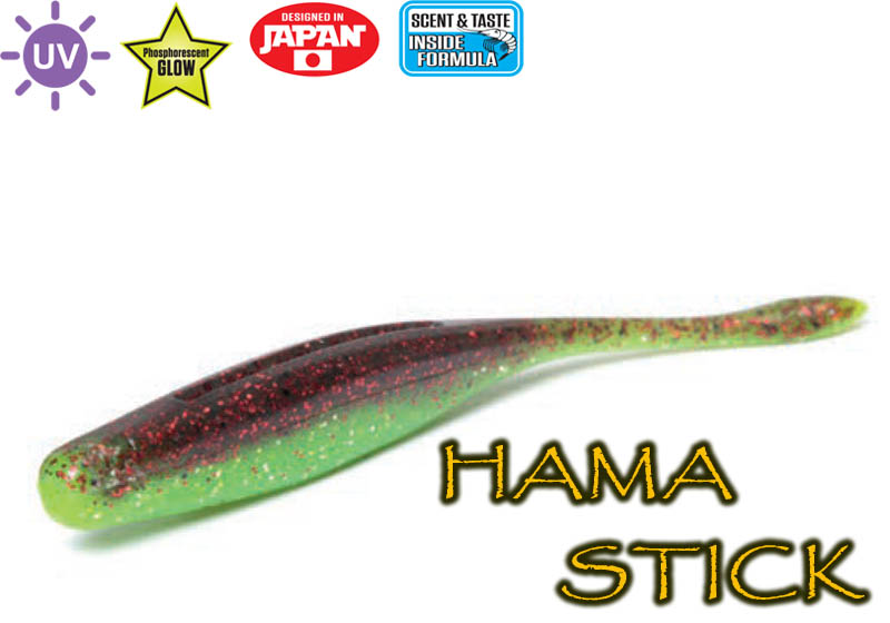Η σιλικόνη με ονομασία Hama Stick πρόκειται για κάποιο Slug. Χαρακτηριστικό της είναι η slim σιλουέτα της καθώς και το μαλακό υλικό που έχει χρησιμοποιηθεί για την κατασκευή της το οποίο της δίνει μια πολύ ρεαλιστική κίνηση στο νερό πραγματοποιώντας όμορφους ελιγμούς.