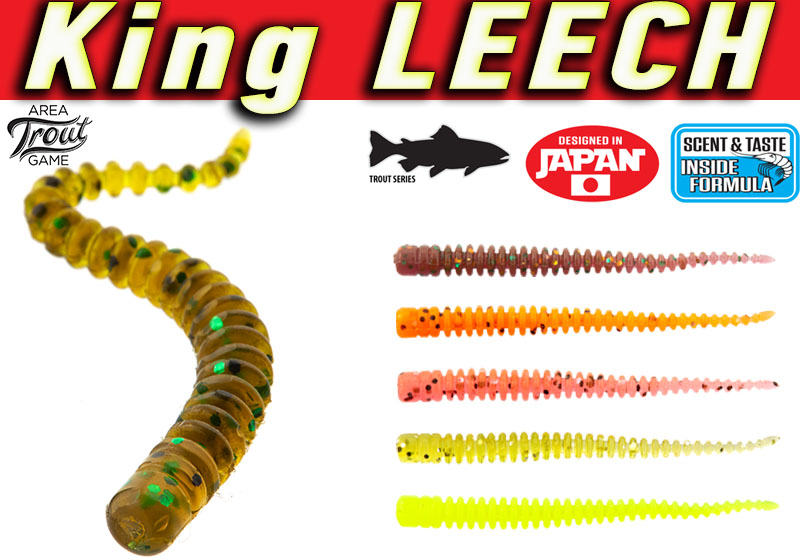 Οι σιλικόνες King Leech, είναι μακρόστενες με slim σιλουέτα κι έχουν την μορφή σκουληκιού. Όλο τους το σώμα αποτελείται από ραβδώσεις οι οποίες δημιουργούν μικροδονήσεις κατά τη διάρκεια της κίνησης τους στο νερό. Η εταιρεία Lucky John τις κατασκεύασε για το ψάρεμα της πέστροφας σε γλυκά νερά με την τεχνική του Spinning και τα παρακλάδια της. Στη συνέχεια όμως αφού δοκιμάστηκε και στο θαλασσινό νερό, κυρίως με την τεχνική του LRF, τα αποτελέσματα ήταν θεαματικά. Τα τεχνικά της χαρακτηριστικά άλλωστε την καθιστούν ένα άκρως δελεαστικό τεχνητό δόλωμα για τα δικά μας ψάρια και κυρίως για το κοκκάλι.