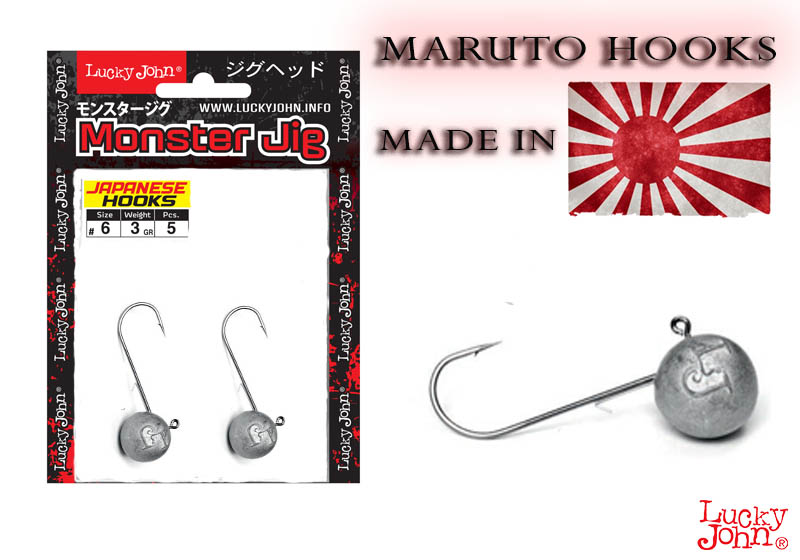 Το MONSTER JIG είναι ένα "απλό" θεωρητικά Jighead που έχει σχήμα "μπάλας", είναι ολοστρόγγυλο. Αποτελεί ιδανική επιλογή για ψάρεμα, σε συνδυασμό με σιλικόνες, κοντά ή και πάνω στον βυθό της θάλασσας, αλλιώς Bottom Fishing. Το MONSTER JIG μπορεί να συνδυαστεί με όλων των τύπου διαφορετικά Soft Baits που υπάρχουν όπως Shads, Curly Tail, Slugs καθώς και σιλικόνες με διχαλωτή ουρά στο τελείωμά τους. Η Lucky John αναφέρει χαρακτηριστικά πως έχουν κατασκευαστεί με τέτοιο τρόπο ώστε να ταιράζουν τέλεια με τις σιλικόνες της όπως είναι οι BASARA, BALLIST, HAMA STICK κλπ. Για αυτόν τον λόγο τα κατασκεύασε σε μεγάλη ποικιλία από διαφορετικά βάρη αλλά και μεγέθη Jig Hooks. Κύριο και βασικότερο χαρακτηριστικό του είναι το εξαιρετικής ποιότητας Jig Hook που έχει προσαρμόσει η εταιρεία Lucky John. Έτσι λοιπόν στα MONSTER JIGS έχουν τοποθετηθεί Jig Hooks τα οποία είναι κατασκευασμένα στην Ιαπωνία ( made in JAPAN ) πιο συγκεκριμένα ανήκουν στην εταιρεία MARUTO που εξειδικεύεται στην κατασκευή αγκιστριών. Τέλος ένα ιδιαίτερο χαρακτηριστικό πολύ χρήσιμο, είναι το γεγονός οτι στο κάτω μέρος του Jig Hook υπάρχει ένα ανοξείδωτο σύρμα το οποίο λειτουργεί σαν "γάντζος" ώστε να μένει η σιλικόνη μας πάντα στο ίδιο-σωστό σημείο είτε κατά τη διάρκεια της ρίψης είτε σε κάποιο πιθανό επιπόλαιο τράβηγμα στο πίσω μέρος της σιλικόνης μας από κάποιο ψάρι.