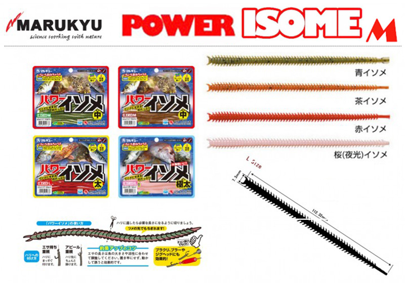 Τα Marukyu Isome δείχνουν σαν ζωντανοί οργανισμοί. Ο σχεδιασμός τους περιλαμβάνει στοιχεία και λεπτομέρειες, τις οποίες συναντάμε μόνο σε ζωντανά σκουλήκια. Το σχήμα τους, σας επιτρέπει να τα χρησιμοποιήσετε σε πολλών ειδών τεχνικές, για διάφορα θηράματα και καιρικές συνθήκες.