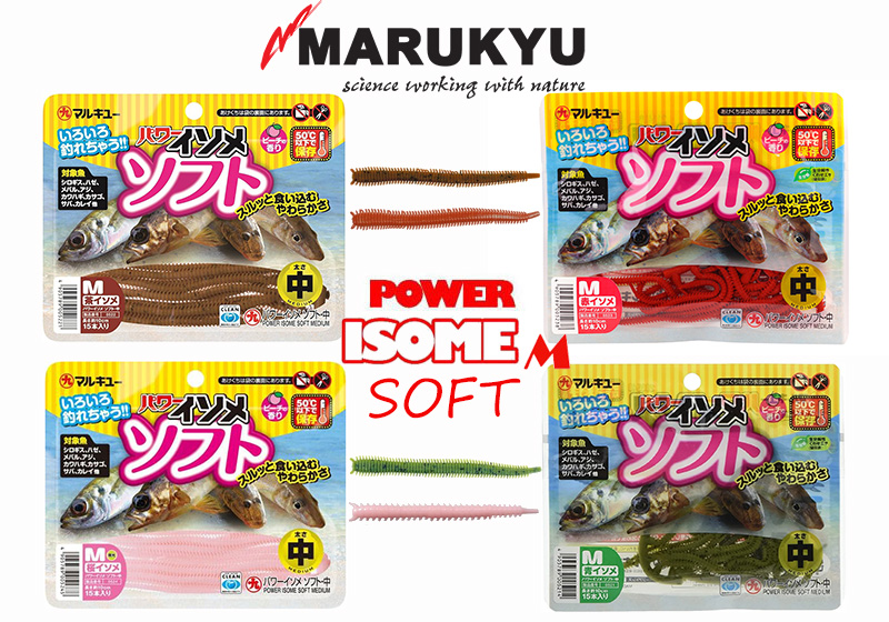 Νέα σιλικονούχα προϊόντα από μια εκ των κορυφαίων Ιαπωνικών εταιριών του είδους. Τα Marukyu Power Isome Soft είναι μια τεχνητή απομίμηση του «ακροβάτη» με ιδιαίτερα μαλακή κατασκευή για πιο αληθοφανή κίνηση και δεν πρέπει να λείπει από το οπλοστάσιο κανενός spinner, ιδιαίτερα αν ασχολείται με σιλικονούχα δολώματα.