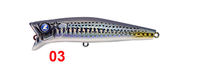 Το γεγονός ότι είτε με Popping είτε με απλή ανάκτηση το Gaboz μένει πάντα στην επιφάνεια της θάλασσας, σημαίνει πως σίγουρα δεν αφήνει ασυγκίνητα τα ψάρια στο πέρασμα του αφού δημιουργεί ελαφρύ κυματισμό και φυσαλίδες. Το μήκος του είναι 6.5 εκατοστά, έχει βάρος 6gr και είναι εφοδιασμένο με δύο σαλαγκιές τύπου ST-46 σε μέγεθος #6. Το χρωματολόγιο είναι πραγματικά τέτοιο που μπορεί να καλύψει ακόμη και τους πιο απαιτητικούς spinner, αφού αποτελείται από μοναδικούς χαρακτηριστικούς χρωματισμούς που αντιπροσωπεύουν το χαρακτήρα της BlueBlue.