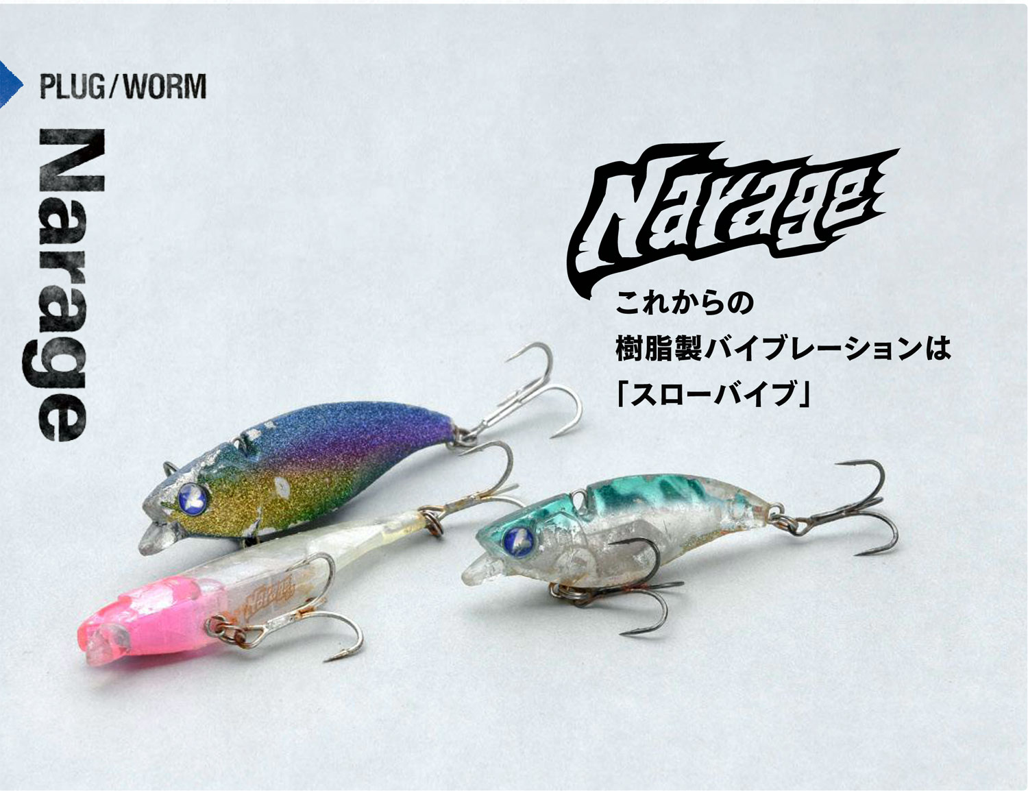 Η BlueBlue συνεχίζει με τις καινοτόμες ιδέες της και μας παρουσιάζει το Narage. Πρόκειται για ένα Vibration με εξαιρετική βολή, διατηρεί το κολύμπι του σε βαθιά νερά ακόμη και όταν κινείται πολύ αργά στον βυθό και τέλος διατηρεί την οριζόντια θέση του σώματος του ακόμη και κατά την διάρκεια της βύθισής του. Όπως θα δείτε έχει μία μικρή γλώσσα στο μπροστινό μέρος του που είναι και το κυριότερο χαρακτηριστικό που το πλαισιώνει. Ενώ τα περισσότερα vibrations οφείλουν την κίνηση τους στην πίεση που δέχεται το πλατύ κεφάλι τους από το νερό και το πίσω μέρος τους, στο Narage προστίθεται ακόμη ένα σημείο στο οποίο οφείλει την κίνηση του που είναι η γλώσσα του.