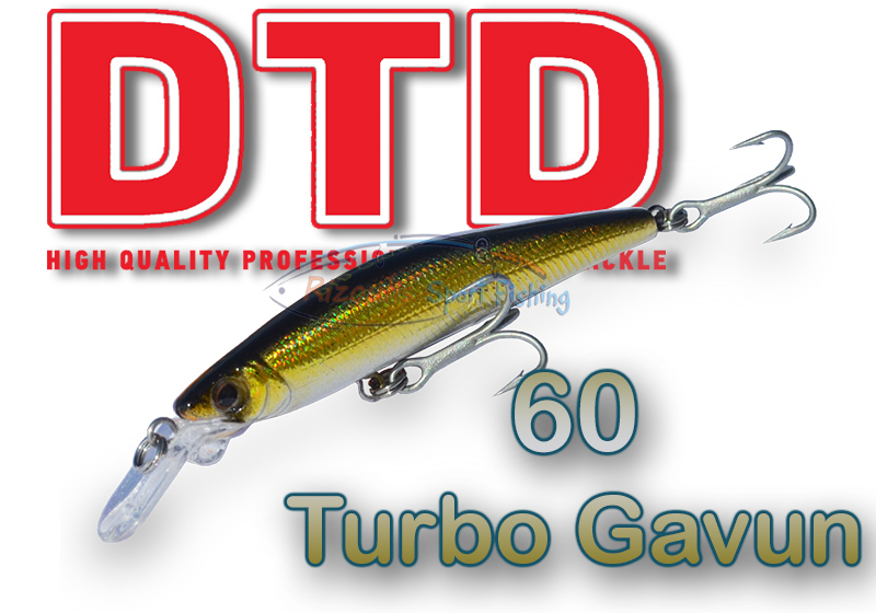 Τεχνητό ψαράκι της DTD για Spinning, με μεγάλη γλώσσα. Το Turbo Gavun DD είναι επιφανείας, πραγματοποιεί βύθιση με πλευρικές κινήσεις (tight wobbling), διαθέτει ρεαλιστικά μάτια και φινίρισμα το οποίο παρομοιάζει φυσικά λέπια.
