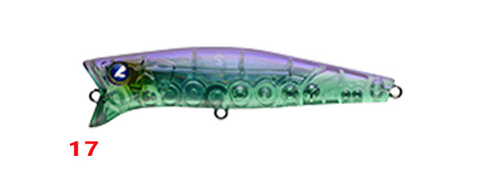 Το γεγονός ότι είτε με Popping είτε με απλή ανάκτηση το Gaboz μένει πάντα στην επιφάνεια της θάλασσας, σημαίνει πως σίγουρα δεν αφήνει ασυγκίνητα τα ψάρια στο πέρασμα του αφού δημιουργεί ελαφρύ κυματισμό και φυσαλίδες. Το μήκος του είναι 9 εκατοστά, έχει βάρος 11gr και είναι εφοδιασμένο με δύο σαλαγκιές τύπου ST-46 σε μέγεθος #6. Το χρωματολόγιο είναι πραγματικά τέτοιο που μπορεί να καλύψει ακόμη και τους πιο απαιτητικούς spinner, αφού αποτελείται από μοναδικούς χαρακτηριστικούς χρωματισμούς που αντιπροσωπεύουν το χαρακτήρα της BlueBlue.