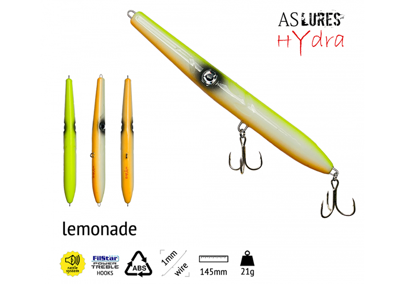 Σαν πρώτη ματιά δείχνει σαν ακόμα ένα surface τεχνητό τύπου "ζαργάνας". Παρατηρώντας το όμως βλέπουμε ότι η δομή του σώματος του διαφέρει από τα συνιθισμένα. Μία από τις βασικές διαφορές είναι ότι το κάτω μέρος του σώματος του δεν είναι ευθυγραμμισμένο. Δηλαδή στο 1/3 από το μπροστινό μέρος ανασηκώνεται ελαφρά δημιουργώντας μια μικρή κλίση προς τα πάνω. Αυτό έχει ως αποτέλεσμα τα Hydra Lures 145 να πετυχαίνουν μία ξεκούραστη walk the dog κίνηση.
