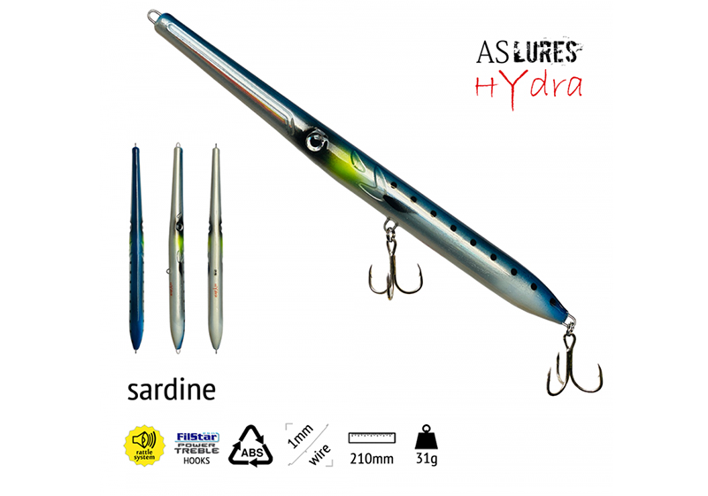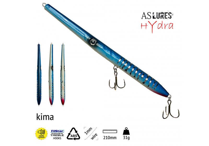 Σαν πρώτη ματιά δείχνει σαν ακόμα ένα surface τεχνητό τύπου "ζαργάνας". Παρατηρώντας το όμως βλέπουμε ότι η δομή του σώματος του διαφέρει από τα συνιθισμένα. Μία από τις βασικές διαφορές είναι ότι το κάτω μέρος του σώματος του δεν είναι ευθυγραμμισμένο. Δηλαδή στο 1/3 από το μπροστινό μέρος ανασηκώνεται ελαφρά δημιουργώντας μια μικρή κλίση προς τα πάνω. Αυτό έχει ως αποτέλεσμα τα Hydra Lures 210 να πετυχαίνουν μία ξεκούραστη walk the dog κίνηση.